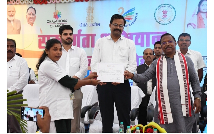 कृषि और आदिम जाति कल्याण मंत्री श्री रामविचार नेताम आज बलरामपुर जिले के शंकरगढ़ विकासखंड में आयोजित जिला स्तरीय सम्पूर्णता सम्मान कार्यक्रम में शामिल हुए। मंत्री श्री रामविचार नेताम ने जिला स्तरीय संपूर्णता अभियान सम्मान समारोह को संबोधित करते हुए कहा कि शंकरगढ़ विकासखण्ड सम्पूर्णता अभियान में शत-प्रतिशत सफलता हासिल की है। आंकाक्षी विकासखंड को इस कीर्तिमान के लिए बधाई और शुभकामनाएं देता हूं। उन्होंने कहा कि नीति आयोग द्वारा चयनित शंकरगढ़ विकासखण्ड में सभी विभागों के सहयोग से चिन्हांकित इंडिकेटर में शत-प्रतिशत उल्लेखनीय कार्य किया गया, जिसका बेहतर परिणाम देखने को मिल रहा है। मंत्री श्री नेताम ने इस मौके पर संपूर्णता अभियान अंतर्गत विभिन्न इंडिकेटर मे विशिष्ट कार्य करने वाले कर्मचारियों एवं फ्रंटलाईन वर्कर को प्रशस्ति पत्र देकर सम्मानित किया।