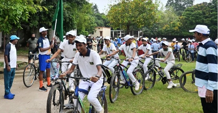 राष्ट्रीय खेल दिवस के तहत आज बिलासपुर में स्कूली छात्र-छात्राओं और 300 से अधिक खिलाड़ियों ने साइकल रैली निकाली। भारत सरकार के फिट इंडिया कार्यक्रम “सन्डेस ऑन सायकल” (Sundays on Cycle) के तहत पीएमश्री स्वामी आत्मांनद विद्यालय नूतन चौक सरकंडा से स्वर्गीय बी.आर. यादव राज्य खेल प्रशिक्षण केन्द्र बहतराई तक यह रैली निकाली गई। पूर्व ओलम्पियन एवं हॉकी के हेड कोच श्री अजीत इमानुएल लकड़ा और अंतरराष्ट्रीय कबड्डी खिलाडी संजू देवी ने हरी झंडी दिखाकर रैली को रवाना किया।