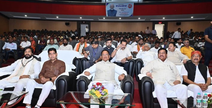 प्रधानमंत्री श्री नरेन्द्र मोदी के लोकप्रिय मासिक रेडियो कार्यक्रम ‘मन की बात’ की 125वीं कड़ी का सीधा प्रसारण आज नवा रायपुर स्थित डॉ. श्यामा प्रसाद उद्योग एवं व्यापार परिसर के कन्वेंशन सेंटर में हुआ। कार्यक्रम में मुख्यमंत्री श्री विष्णु देव साय, खाद्य मंत्री श्री दयालदास बघेल, उद्योग मंत्री श्री लखन देवांगन, राजस्व मंत्री श्री टंक राम वर्मा, कौशल विकास एवं रोजगार मंत्री श्री गुरु खुशवंत साहेब, विधायक श्री इंद्र कुमार साहू तथा छत्तीसगढ़ राज्य औद्योगिक विकास निगम के अध्यक्ष श्री राजीव अग्रवाल सहित बड़ी संख्या में जनप्रतिनिधिगण और नागरिक उपस्थित थे।